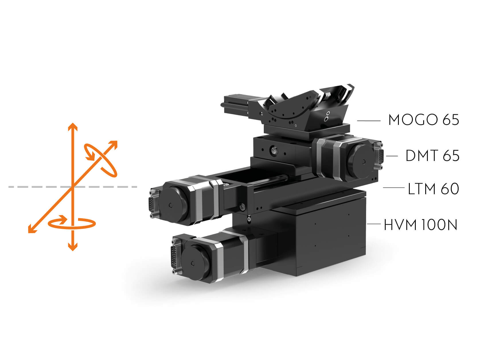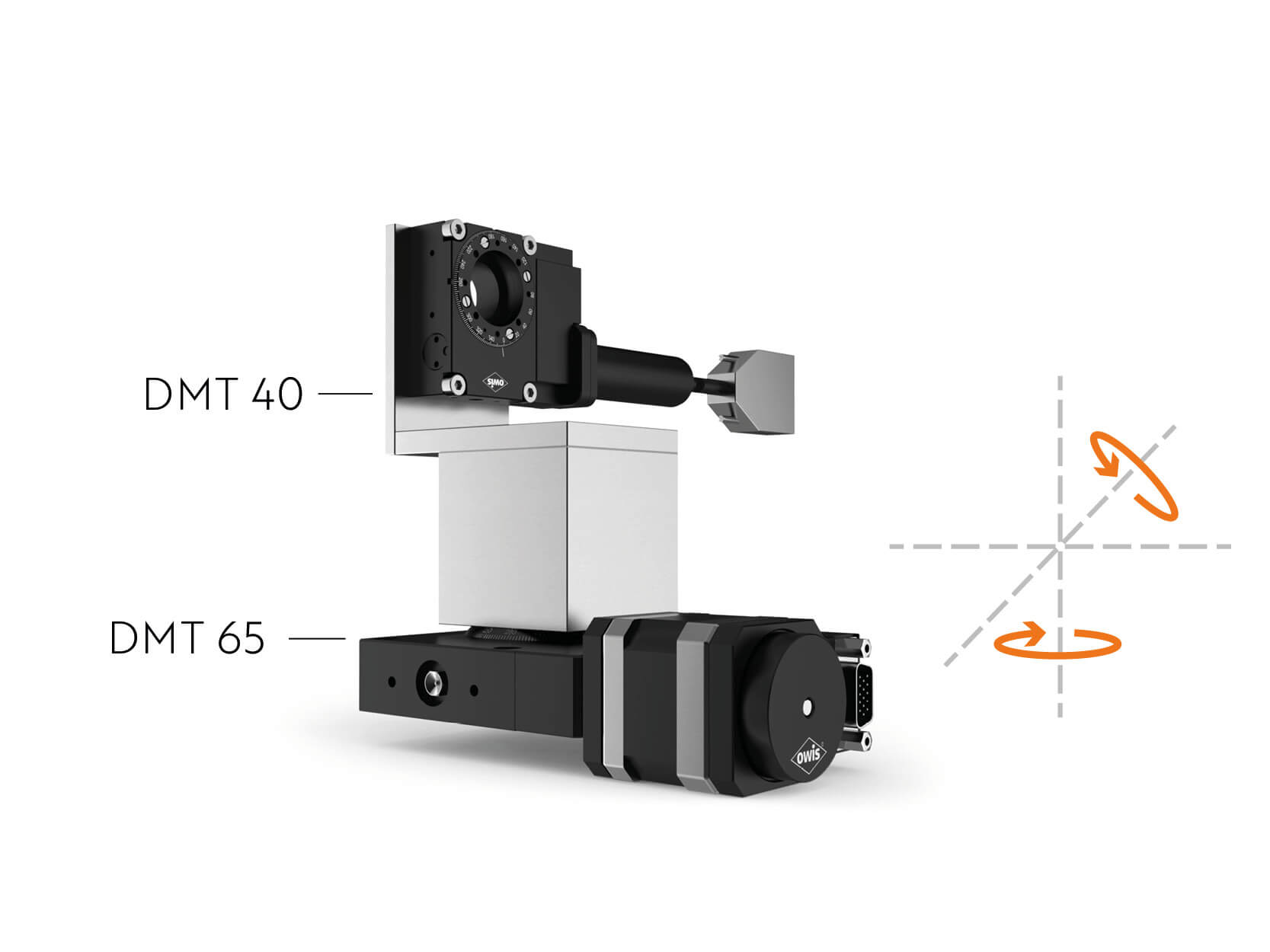 Für eine Kooperation zwischen TU Berlin und dem Max-Planck-Institut für Chemische Energiekonversion in Mülheim an der Ruhr haben wir durch Kombination mehrerer Achsen zwei Manipulatoren aufgebaut. So können die Optik (Abb. 1) und der Detektor (Abb. 2) hochpräzise zum Strahl ausgerichtet und der Abstand zur Lichtquelle über die beiden Linearachsen angepasst werden. Die Optik rotiert mit einem Positioniersystem aus zwei Drehmesstischen DMT 40 und DMT 65 in zwei Bewegungsrichtungen. Der Detektor wird in vier Freiheitsgraden bewegt. Dafür haben wir Hochpräzisions-Goniometer MOGO 65, Drehmesstisch DMT 65, Präzisions-Lineartisch LTM 60 und Höhenverstelltisch HVM 100N kombiniert.