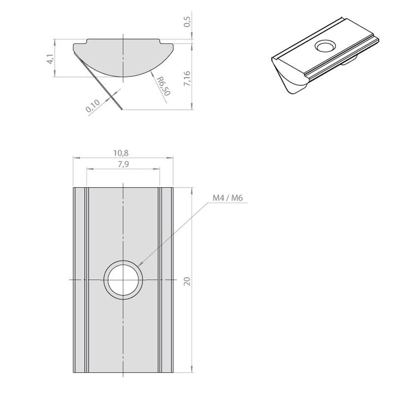 20 sliding blocks with central M6 thread for UMP and URP
