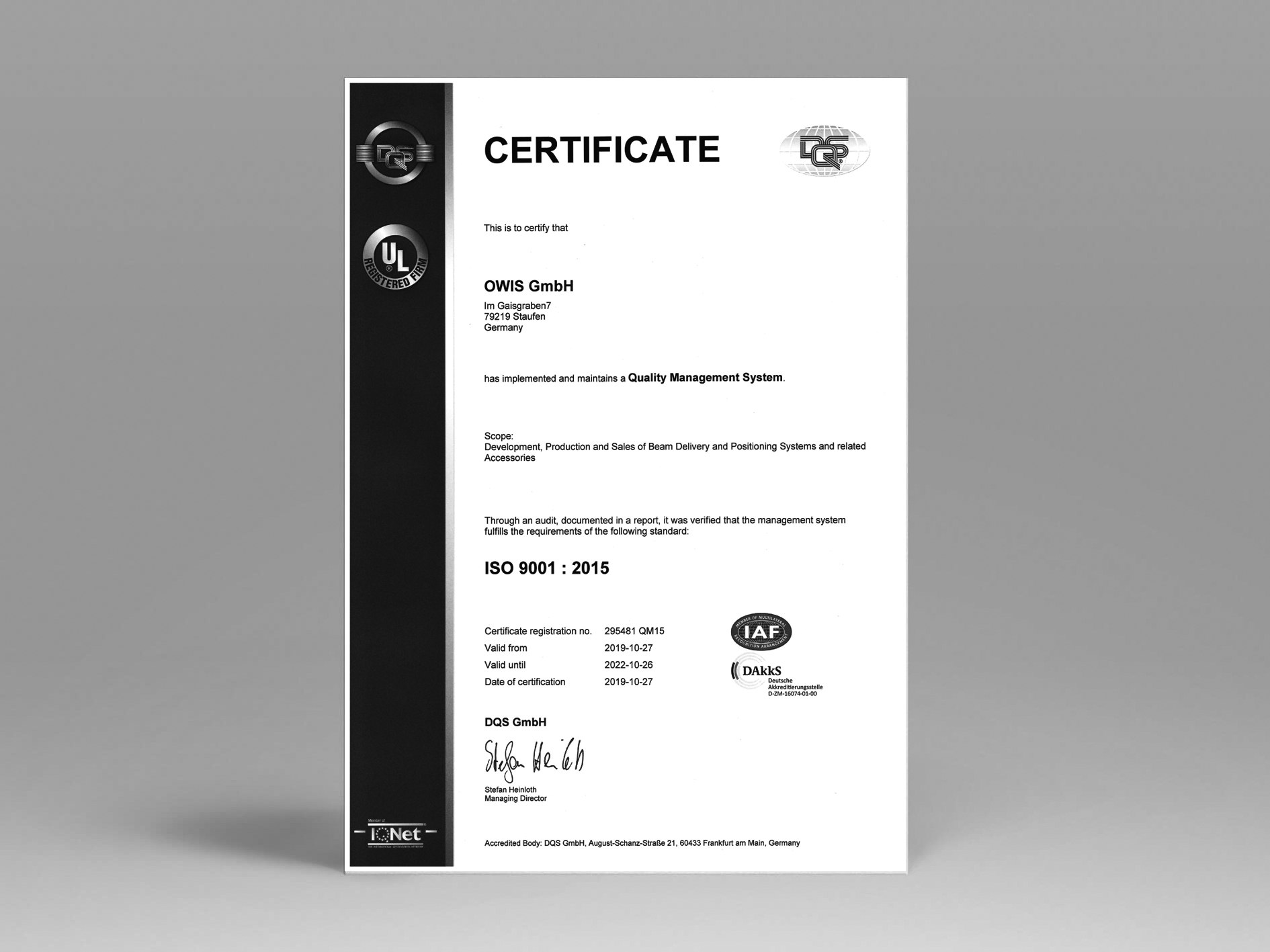 Certificate "ISO 9001:2015"