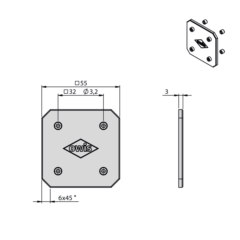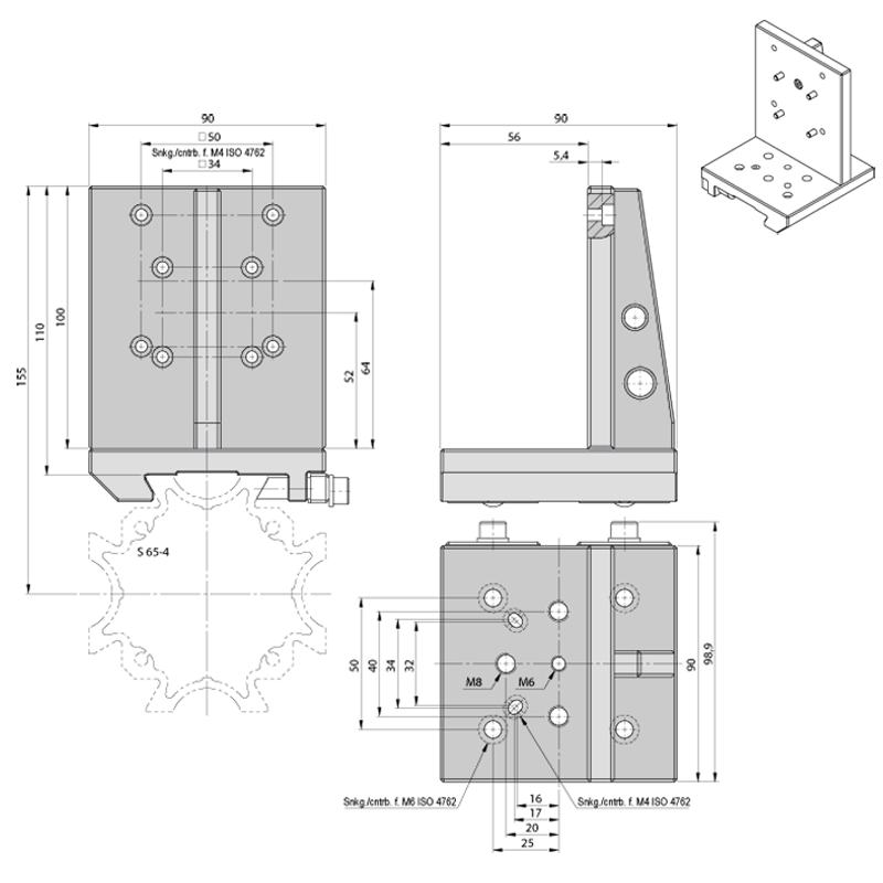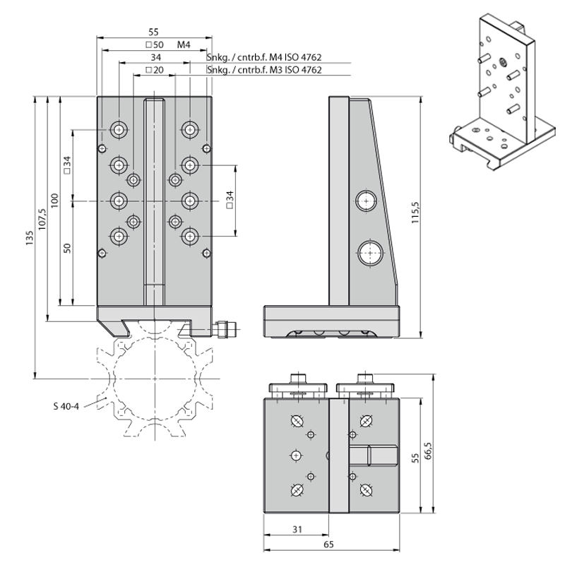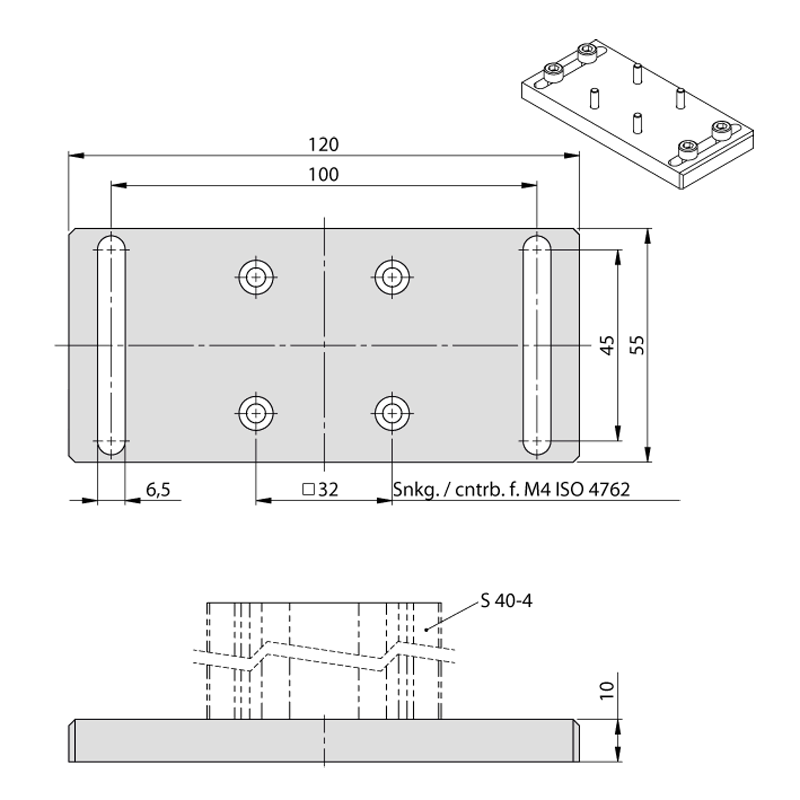 Montageplatte für 4-Seiten-Profile S 40-4, horizontal