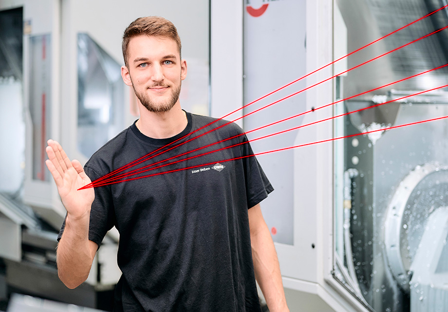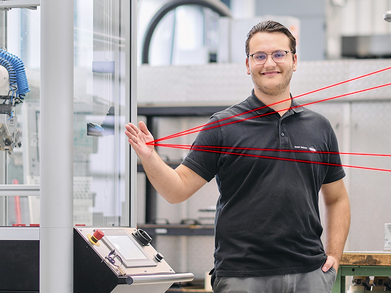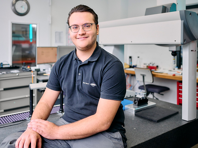 Luca ist frisch gebackener Maschinen- und Anlagenführer und hat nach Abschluss seiner Ausbildung einen Aufgabenbereich in unserer Qualitätssicherungsabteilung übernommen. Mit Hilfe der 3D-Koordinatenmessmaschine prüft er, ob die gefertigten Teile den Anforderungen entsprechen.