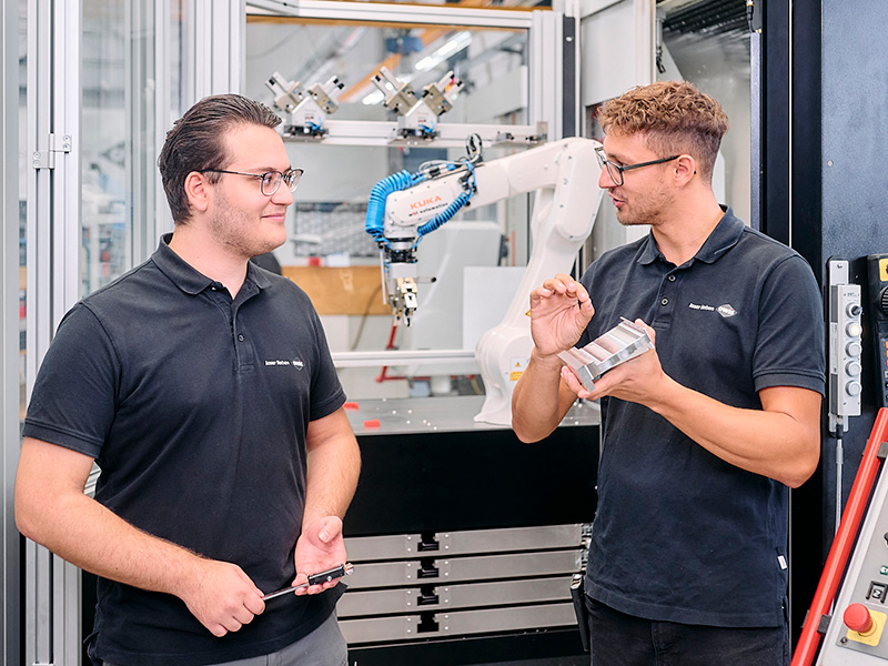 CNC-Bearbeitungszentren, Roboter, Messgeräte und spannende Zerspanungsaufgaben – eine Ausbildung in unserer Fertigung ist eine runde Sache mit ordentlich fachlichem Impact. Lerne von unseren CNC-Profis und sei ganz vorne mit dabei, wenn es darum geht, technologische Grenzen in der Fertigung zu verschieben. Sichere Dir jetzt Deinen Ausbildungsplatz: