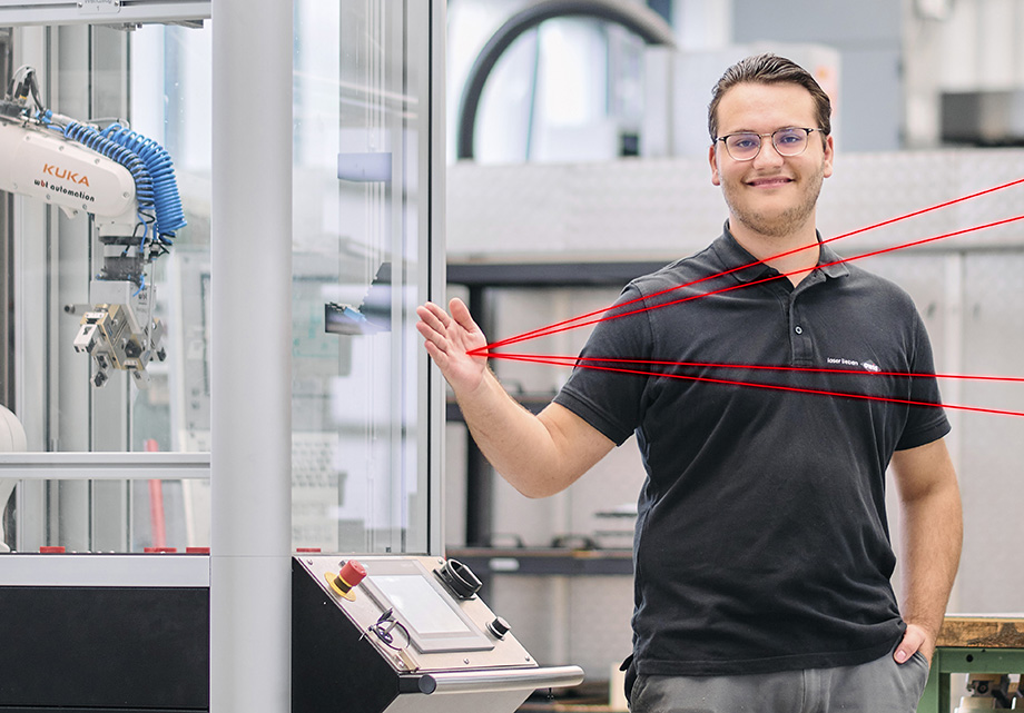 Luca ist frischgebackener Maschinen- und Anlagenführer und hat nach Abschluss seiner Ausbildung einen Aufgabenbereich in unserer Qualitätssicherung übernommen. Mit Hilfe der 3D-Koordinatenmessmaschine prüft er, ob die gefertigten Teile den Anforderungen entsprechen.